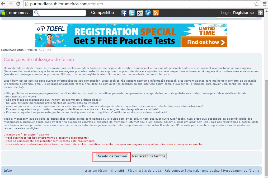 Aceite os termos do fórum