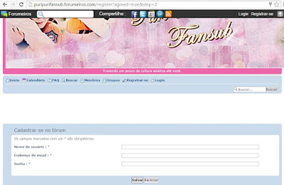 O primeiro passo é entrar nesse link --> http://puripurifansub.forumeiros.com/register